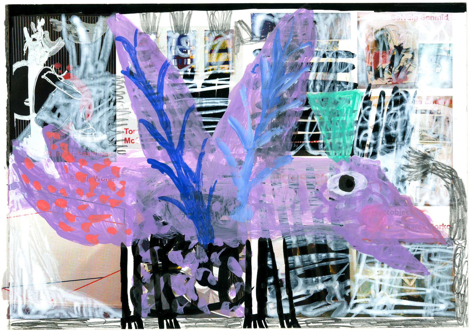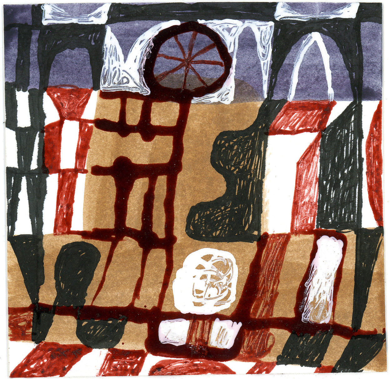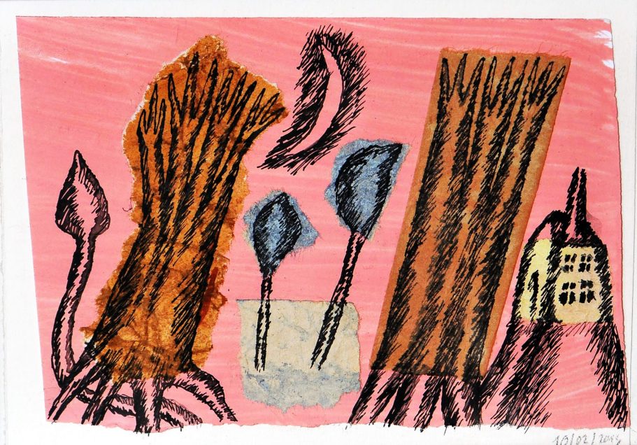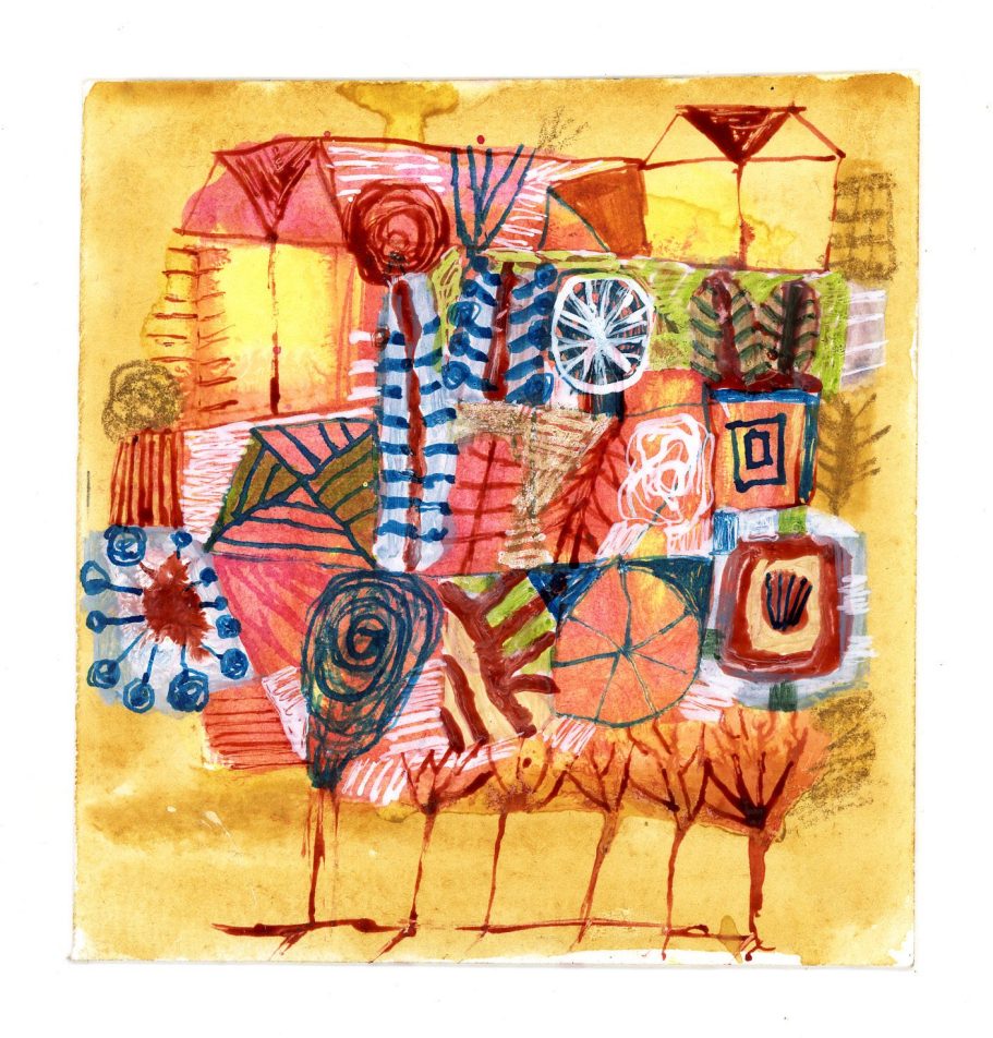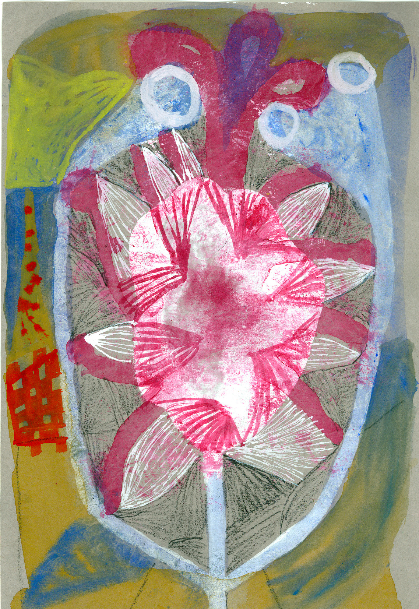 feather, ink, watercolours, 2023, 7 x 7 cm