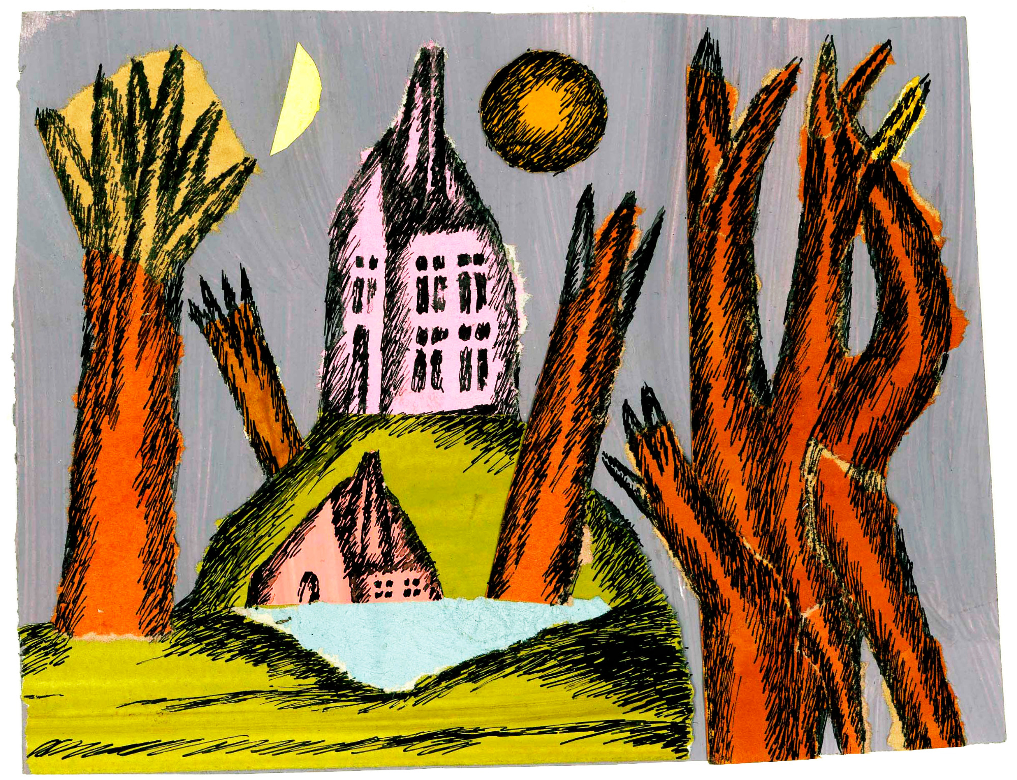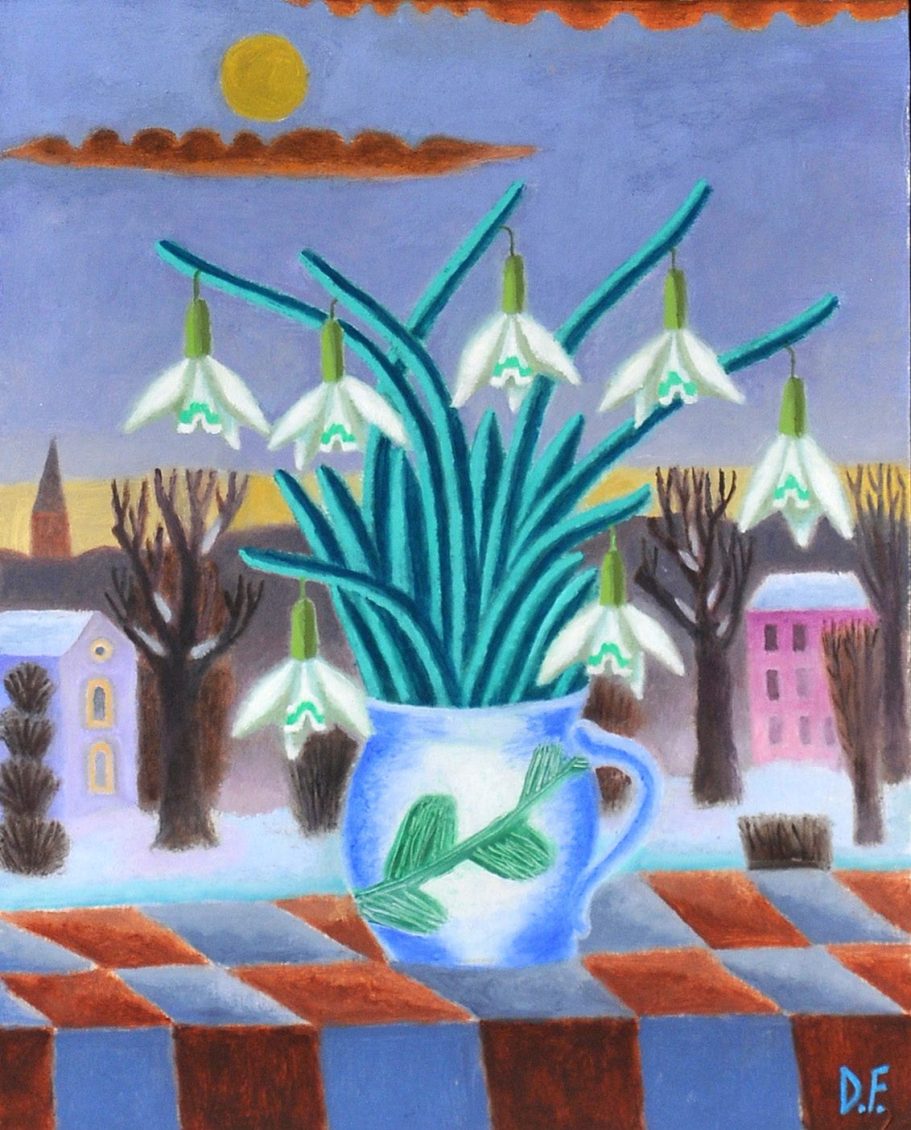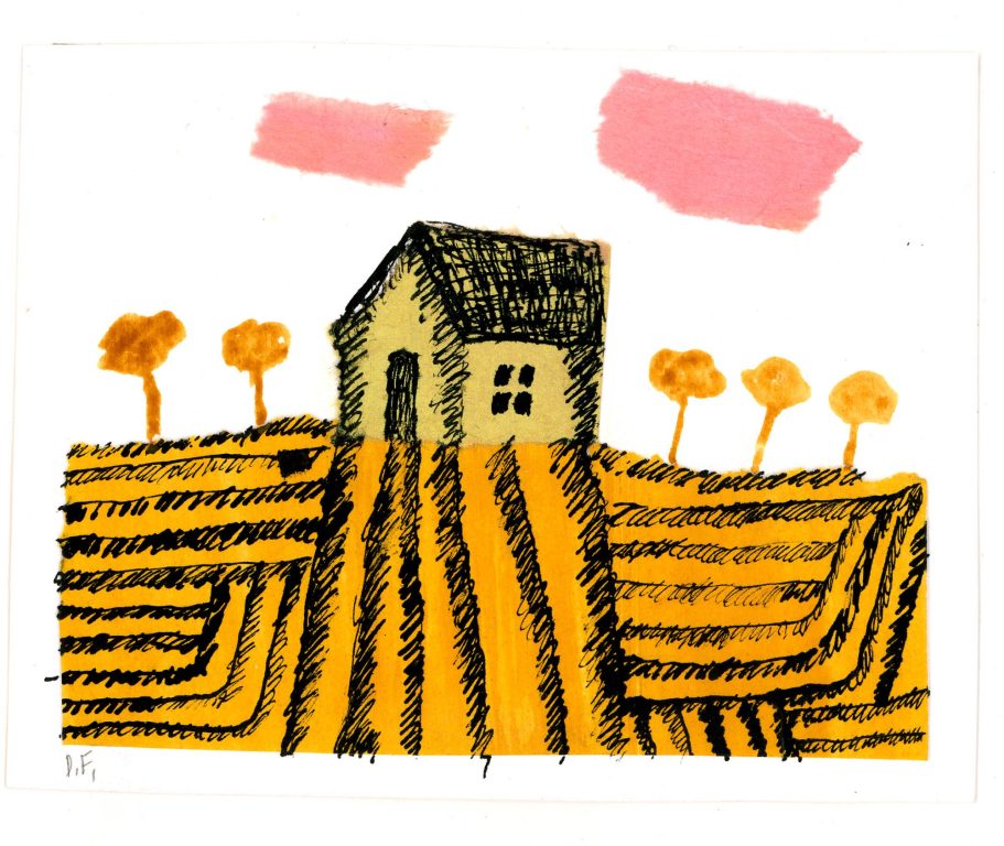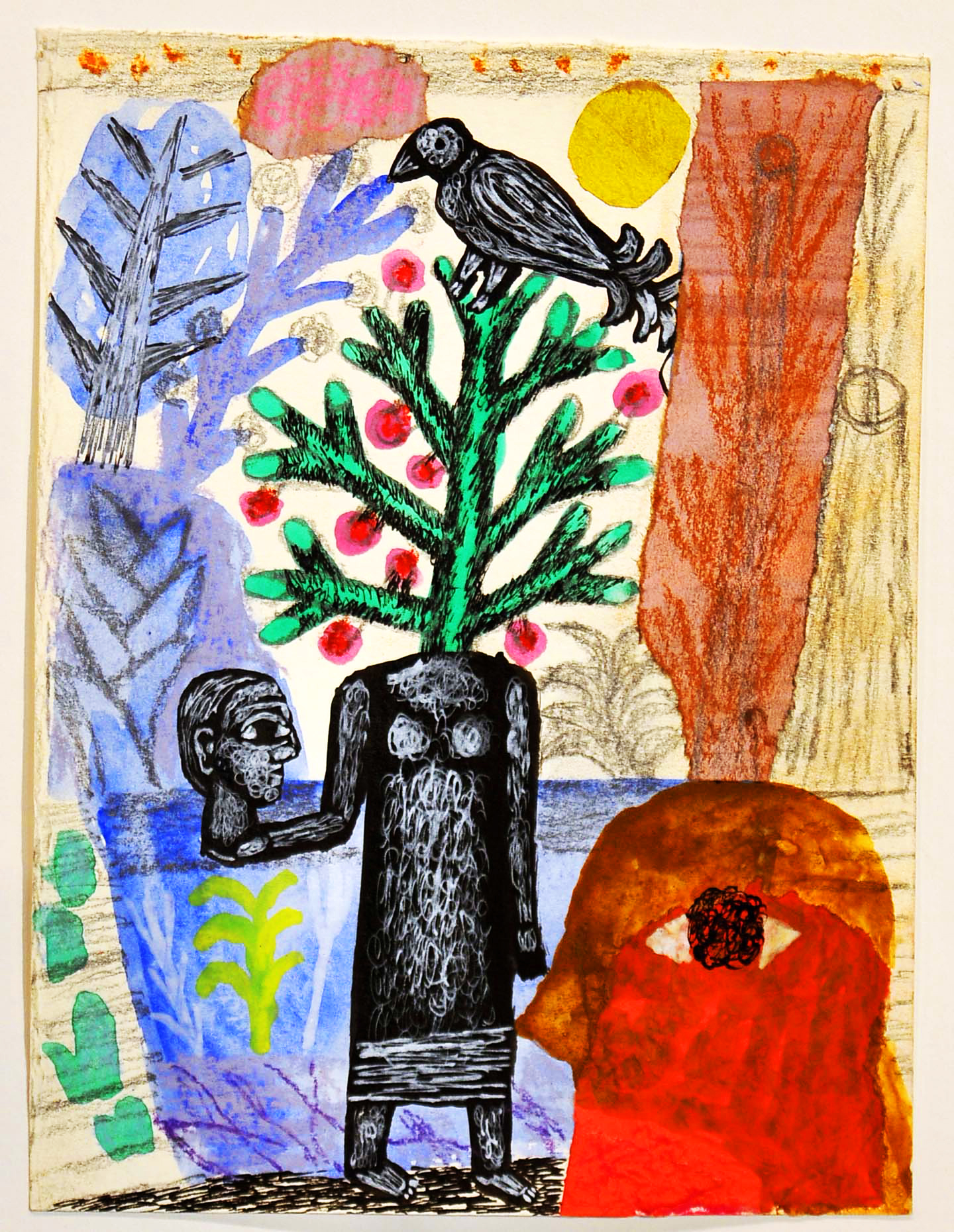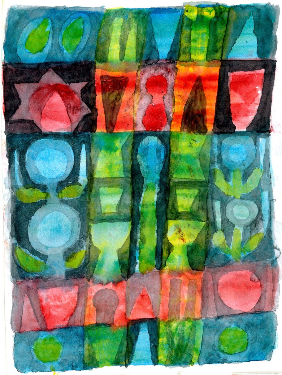 feather, ink, watercolours, 2023, 7 x 7 cm
